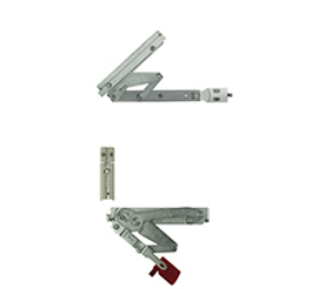 Le cerniere consentono l'apertura dell'anta a 180° e si montano, interamente a contrasto, su tutti i profili a camera europea. La cerniera inferiore, regolabile in 3D, è composta da una base in zama e un innovativo sistema di leve in acciaio ad alta resistenza. La cerniera superiore, anch'essa d'acciaio, è dotata di un sistema di aggancio rapido all'anta. Il sistema di leve, brevettato, è privo di asole garantendo in questo modo una maggiore resistenza ed evitando l'usura meccanica da scorrimento.