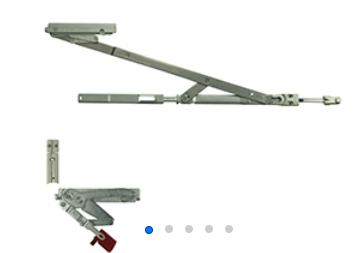 Il kit, composto da cerniere a scomparsa e braccio lungo, consente l' apertura dell'anta a 180° e si monta interamente a contrasto su tutti i profili a camera europea. La cerniera inferiore, regolabile in 3D, è composta da una base in zama e un innovativo sistema di leve in acciaio ad alta resistenza. Il braccio superiore è d'acciaio inox ed è integrato con la cerniera superiore. Il sistema di leve, brevettato, è privo di asole garantendo in questo modo una maggiore resistenza ed evitando al tempo stesso l'usura meccanica da scorrimento. Impiegabile su finestre con larghezza da 690 a 1700mm.