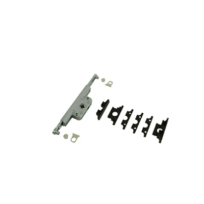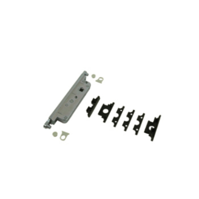 Il kit è composto da due cerniere a scomparsa e due spessori per il ricentramento dell'anta. Il montaggio è interamente a contrasto su tutti i profili a camera europea. Le cerniere, regolabili in 3D, sono composte da una base in zama e un innovativo sistema di leve in acciaio, privo di asole, in grado di garantire una maggiore resistenza, evitando al tempo stesso l'usura meccanica da scorrimento.