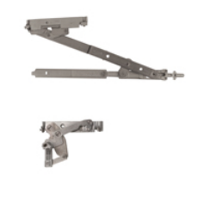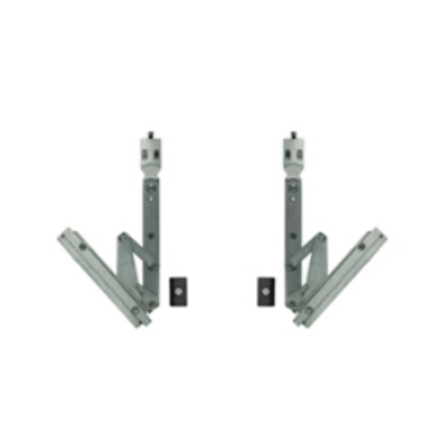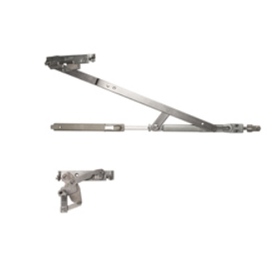 Il kit, composto da cerniere a scomparsa e braccio lungo, consente l' apertura dell'anta a 180° e si monta interamente a contrasto su tutti i profili a camera europea. La cerniera inferiore, regolabile in 3D, è composta da una base in zama e un innovativo sistema di leve in acciaio ad alta resistenza. Il braccio superiore è d'acciaio inox ed è integrato con la cerniera superiore. Il sistema di leve, brevettato, è privo di asole garantendo in questo modo una maggiore resistenza ed evitando al tempo stesso l'usura meccanica da scorrimento. Impiegabile su finestre con larghezza da 700 a 1700mm, è adatto anche agli infissi integrati nelle facciate continue.