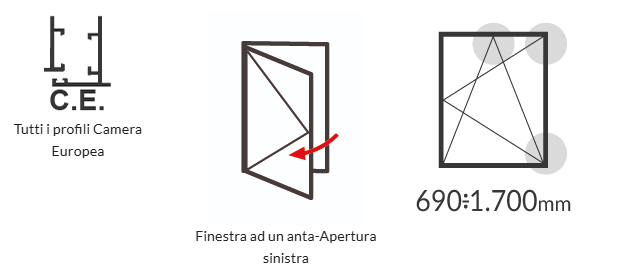 Il kit, composto da cerniere a scomparsa e braccio lungo, consente l' apertura dell'anta a 180° e si monta interamente a contrasto su tutti i profili a camera europea. La cerniera inferiore, regolabile in 3D, è composta da una base in zama e un innovativo sistema di leve in acciaio ad alta resistenza. Il braccio superiore è d'acciaio inox ed è integrato con la cerniera superiore. Il sistema di leve, brevettato, è privo di asole garantendo in questo modo una maggiore resistenza ed evitando al tempo stesso l'usura meccanica da scorrimento. Impiegabile su finestre con larghezza da 690 a 1700mm.