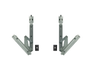 Il kit è composto da due cerniere a scomparsa e due spessori per il ricentramento dell'anta. Il montaggio è interamente a contrasto su tutti i profili a camera europea. Le cerniere, regolabili in 3D, sono composte da una base in zama e un innovativo sistema di leve in acciaio, privo di asole, in grado di garantire una maggiore resistenza, evitando al tempo stesso l'usura meccanica da scorrimento.