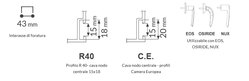 Meccanismo interno bidirezionale da impiegarsi in abbinamento con martelline con interasse 43mm. Corpo e meccanismi in zama, rotazione del manico di 90° gradi.