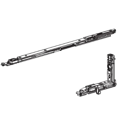 Il kit, composto da cerniere a scomparsa e braccio lungo, consente l'apertura dell'anta a 180° e si monta interamente a contrasto su tutti i profili a camera europea. La cerniera inferiore, regolabile in 3D, è composta da una base in zama e un innovativo sistema di leve in acciaio ad alta resistenza. Il braccio superiore è d'acciaio inox ed è integrato con la cerniera superiore. Il sistema di leve, brevettato, è privo di asole garantendo in questo modo una maggiore resistenza ed evitando al tempo stesso l'usura meccanica da scorrimento. Impiegabile su finestre con larghezza da 690 a 1700mm.